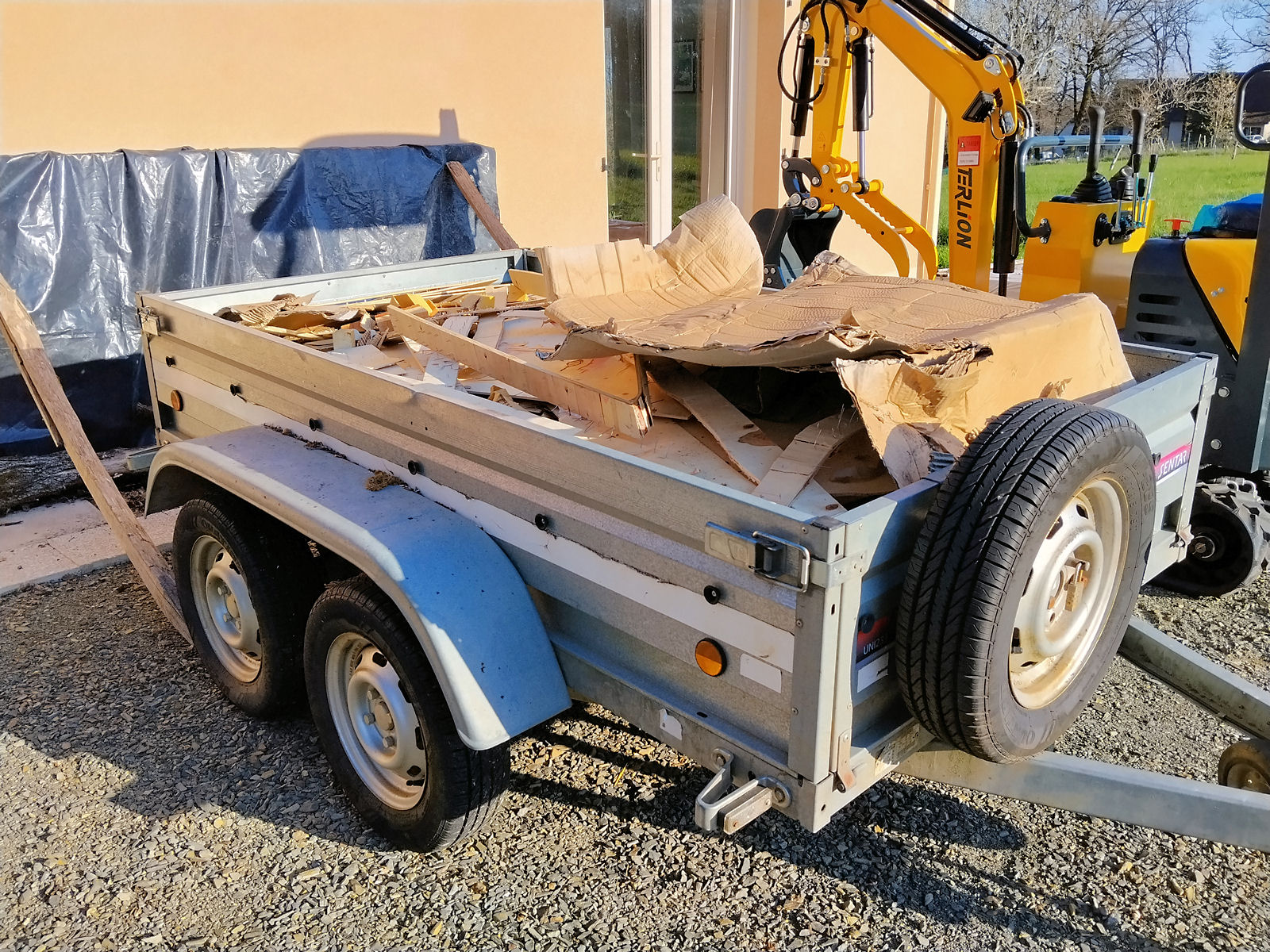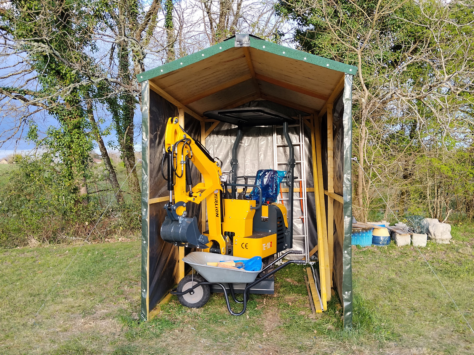 It didn’t take me very long to find out how tricky working the excavator actually is and my admiration for the guys who have done work with much larger machines at my old house at Plazac and here grew by the minute. There’s a definite learning curve and it’ll take me some time to become even half-proficient, if I’m lucky. As it was I drove my new dumper into the excavator’s bucket when initially getting into position to tip earth into and whacked the side of the dumper’s bucket a couple of times while dropping earth into it, fortunately without doing any damage.
