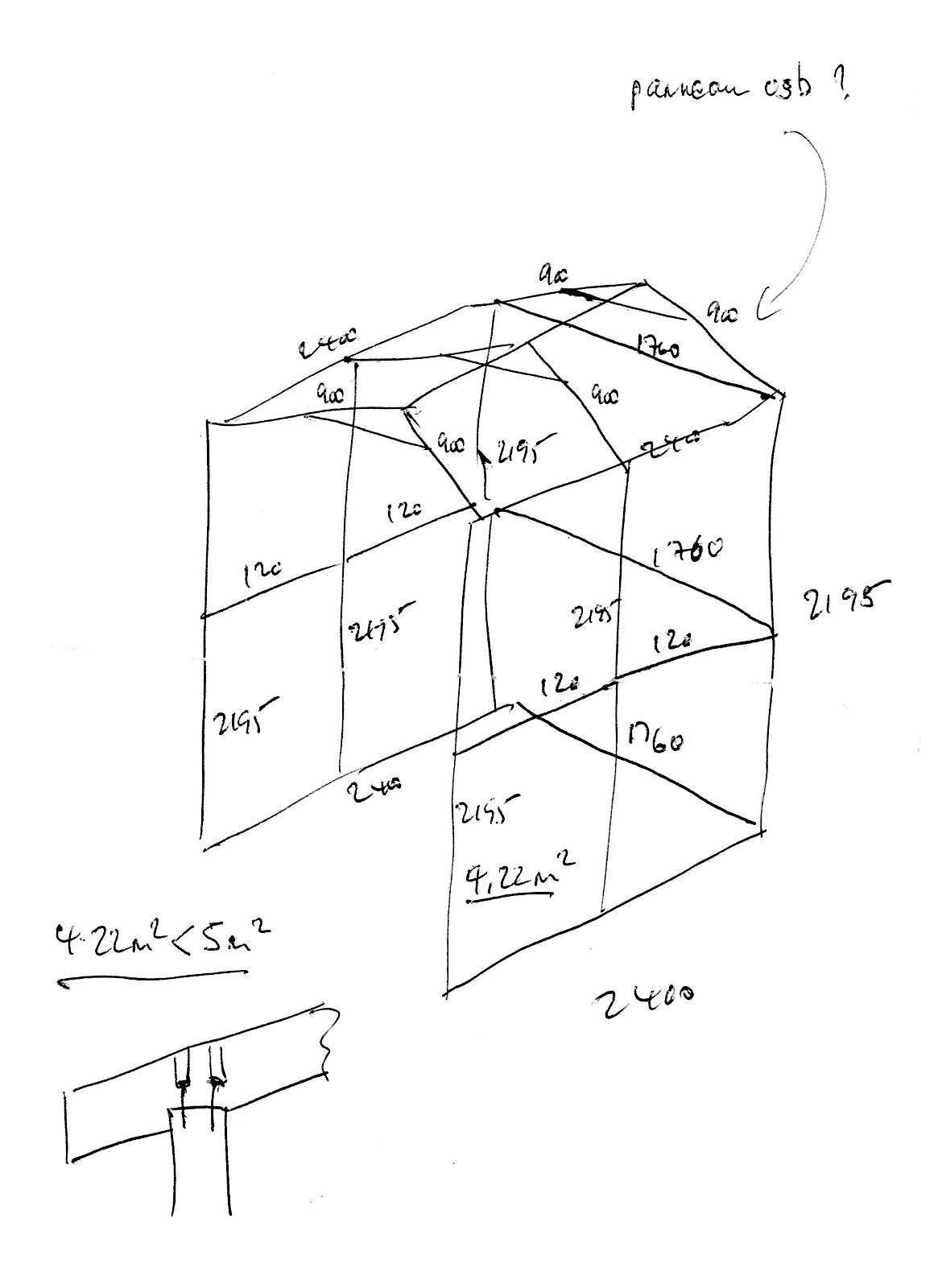 I want to be able to get it into a waterproof temporary structure at the bottom of my garden which will not be too obtrusive, will stand directly on the grass and will be easily removable when I’ve finished with it. I’ve decided to go with a wooden framed structure which I will build myself that will be anchored into the ground with angle-iron at its four corners and have a roof and sides covered with green plastic tarpaulin sheet.